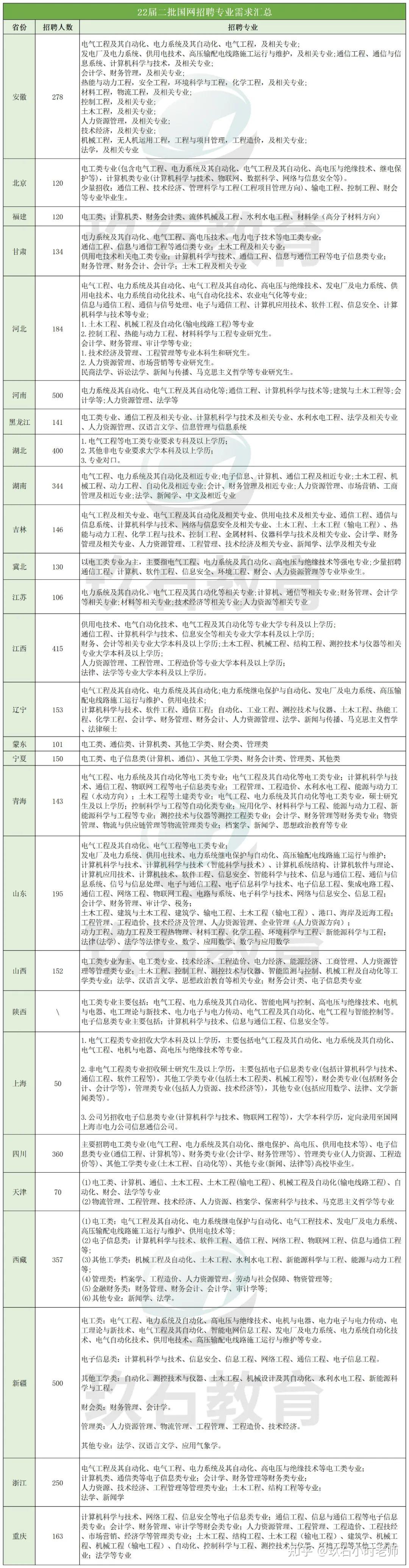 2.上述更新的汇总表格里面所包含的二级分类只是一部分,没有罗列在其中的不代表不可以报考!一般来说分歧比较大的有自动化、机械。自动化的最大分歧点在于:单控和双控专业国网是否需要的问题,如果专业名字只有自动化三个字,那么是可以报考的,但是也要注意哪些省网公司需要。