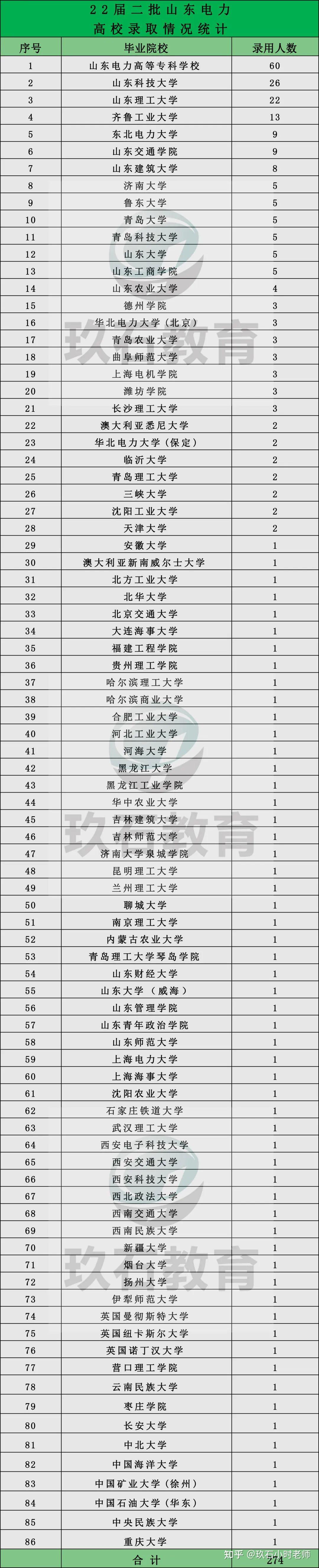 从二批录取结果可以看出,录取人数第一的有山东电力高等专科学校,录用人数为60人。山东科技大学、山东理工大学招聘20+人,分别位列本届二批招聘第二名、第三名。