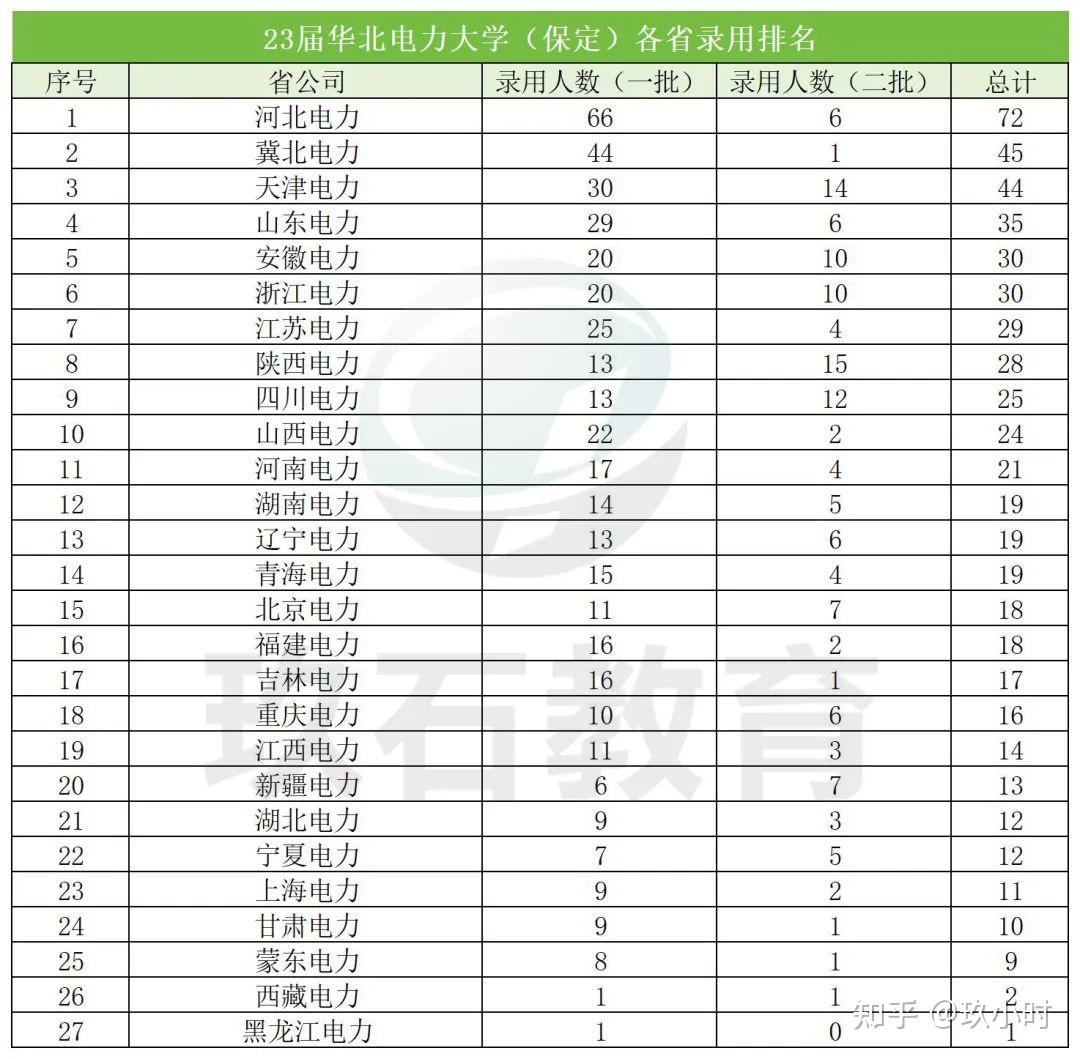 从23届高校录用院校数据排名可见,华北电力大学(北京)两批共录用657人排名第一,保定校区两批共录用594人,排名第四!该校每年去国家电网的毕业生人数都相当可观。虽然华北电力大学并非985大学,但也是一所实力相当强劲的211大学。