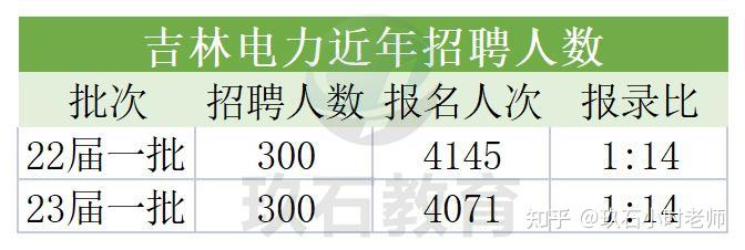 从上面的数据可以看出,宁夏电力历年一批招聘需求人数稳定在300人,报名人次也相差不大,报录比在1:14竞争压力小且较为平稳。想上岸吉林电网的同学一批可以冲!