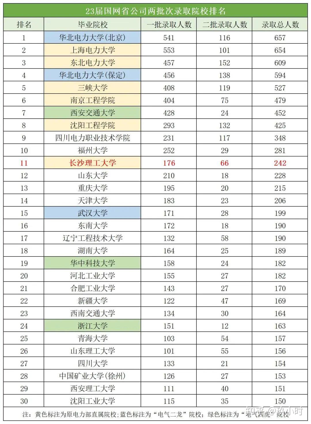 23届国网招聘湖南电力共录用长沙理工大学138人,排名第一,其次为江西电力录用长沙理工大学15人,浙江电力录用14人。