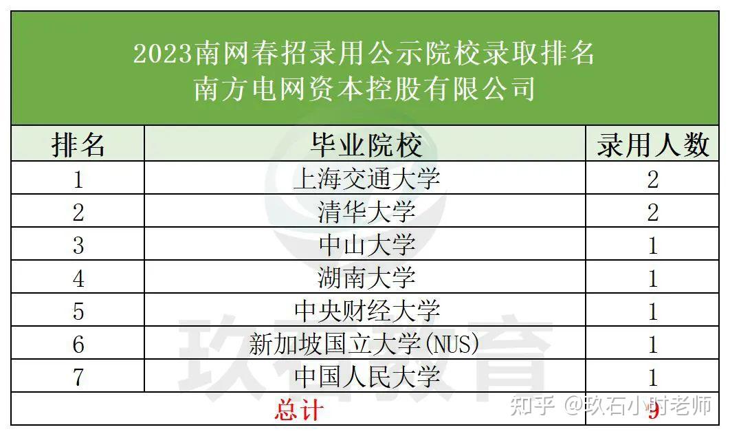 南网资本控股有限公司23届春招共招收了9人,上海交通大学、清华大学都录用了2人,从录取结果可以看出,南网对院校要求还是很高的。