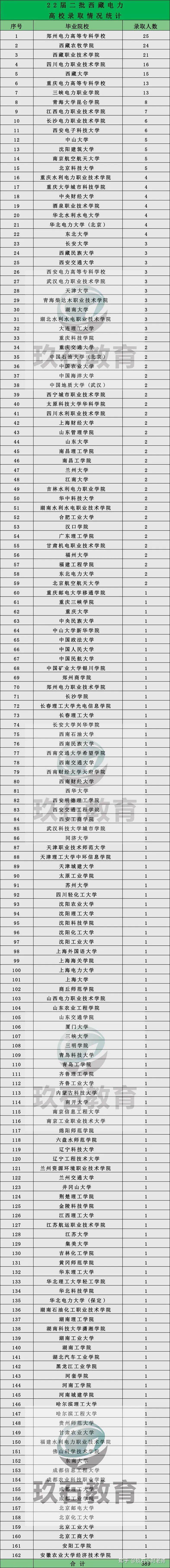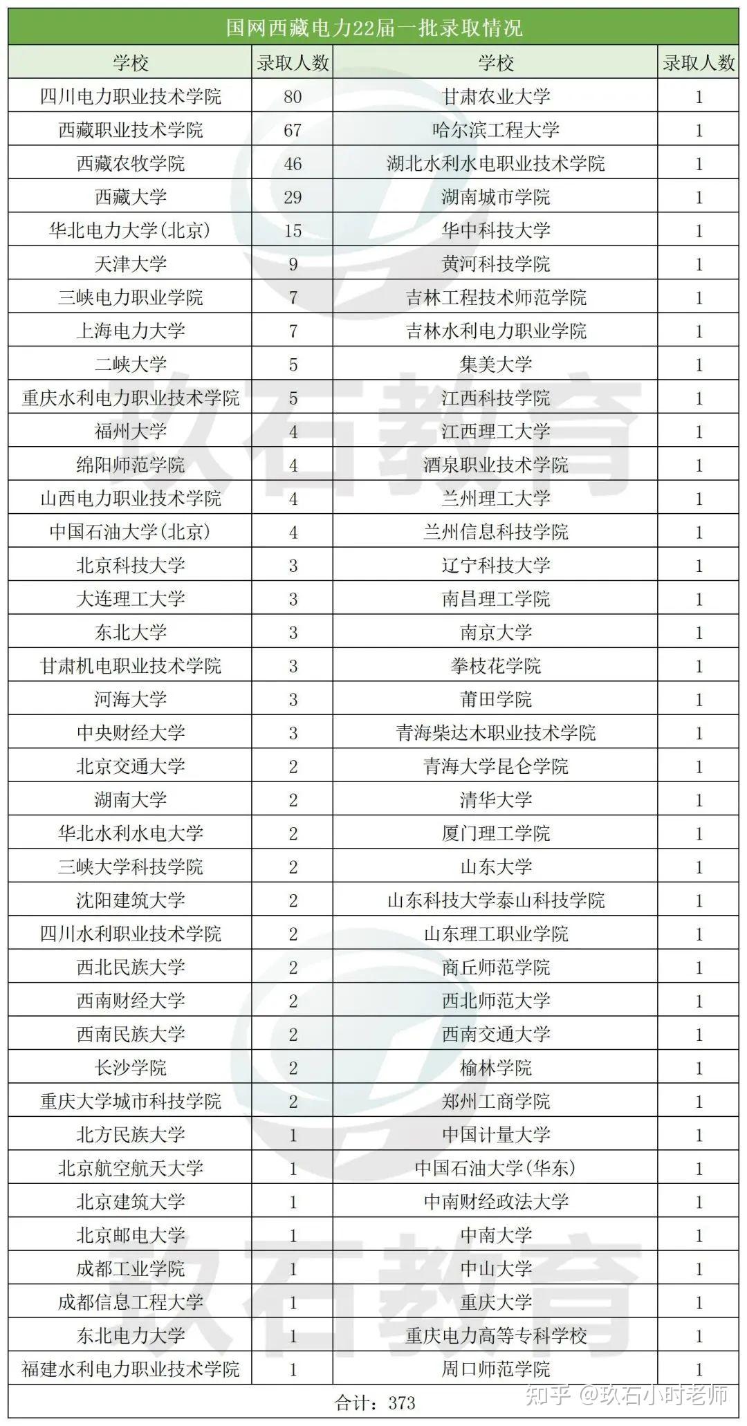 22届一批国网西藏电力共录用373名学生,排名第一的是四川电力职业技术学院共80人,第二名是西藏职业技术学院67人, 前5名有3所都是西藏本地院校。