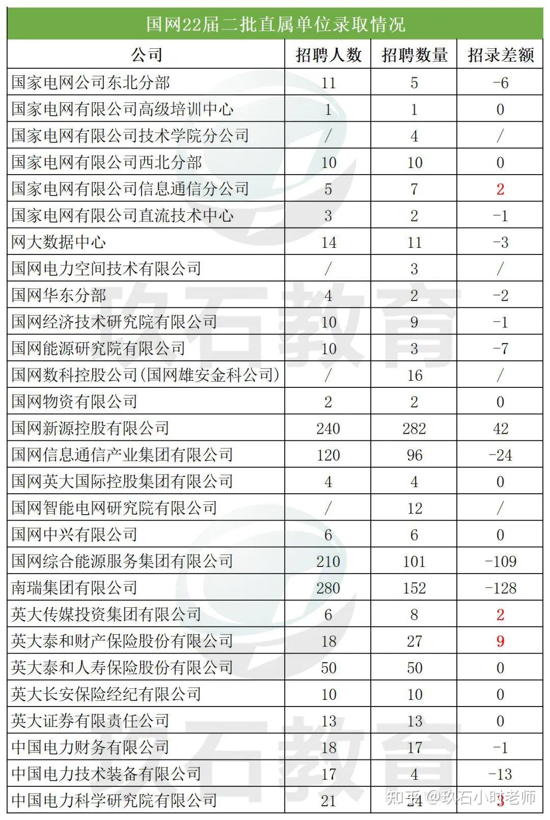值得注意的是22届一批直属单位中,只有国网新源控股有限公司、国网综合能源服务有限公司、南瑞集团有限公司这3家直属单位招聘人数均超过100人;