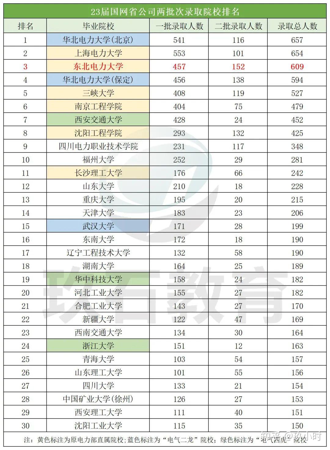 从23届高校录用院校数据排名可见,东北电力两批共录用609人排名第3!入网排名仅次于华北电力大学北京校区和上海电力大学。