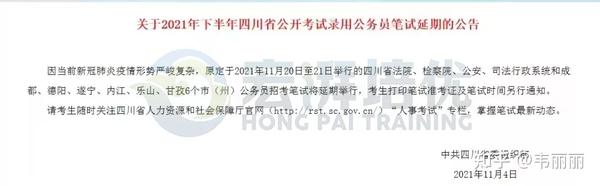 还有各省份公务员笔试也延期笔试:原定于2023年11月20日至21日举行的四川省法院、检察院、公安、司法行政系统和成都、德阳、遂宁、内江、乐山、甘孜6个市(州)公务员招考笔试将延期举行,考生打印笔试准考证及笔试时间另行通知。