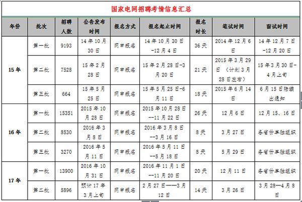 参考基本条件:(一)年龄要求:博士研究生的年龄不超过33周岁、硕士研究生不超过28周岁、本科生不超过25周岁(毕业生年龄计算的截止时间为2017年6月30日),应为应届毕业生。(一)学历要求:电气类考生专科及以上均可参加笔试,非电类专业( 财会类,通信类,金融类,计算机类,其他类,其他工学类)均需要本科及以上学历。(二)专业要求: