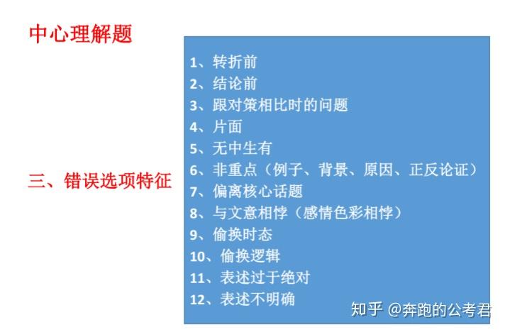 先是言语,很多人都会觉得言语比较玄学,学了好久最后分数提不上去,做了很多题最后还是靠语感来解答,语感这事,碰上了就对了,碰不上就是大坑,就做题方法而言,主要就是两个字,一个是找,一个是对。言语理解主要包括阅读理解、逻辑填空、语句表达和篇章阅读。其中篇章阅读的题目都在前三项里面,而且很多省份不考篇章阅读,基本没有什么可说的。就阅读理解来说,中心理解题目是关键,而在中心理解题中,“找”同样重要。在文段中找到关联词、程度词、主题词等,题目就迎刃而解了。
