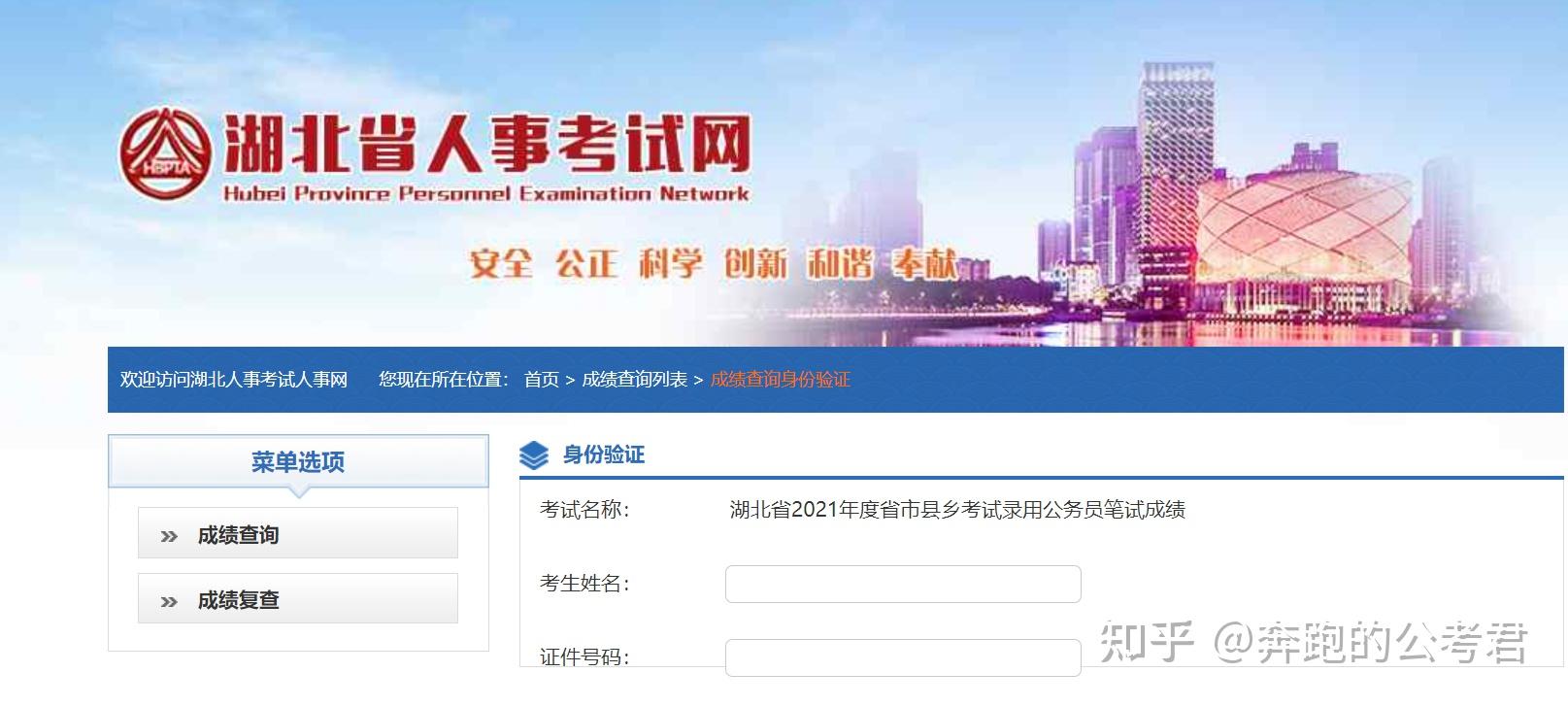 查成绩网站:湖北人事考试 - 成绩查询身份验证 (e21cn.com)