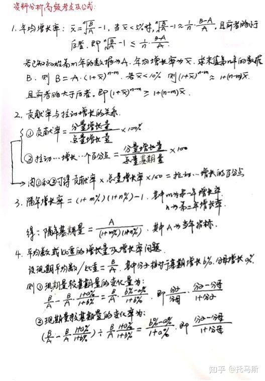 所有的资料分析题都是在这 4 个点的基础上进行的变形和延伸。比如在增长率的基础上,延伸出同比增长率、环比增长率、隔年增长率、平均数的增长率、比重的增长率、混合增长率等等。而每一个考察点,教材上都有现成的公式可供套用。