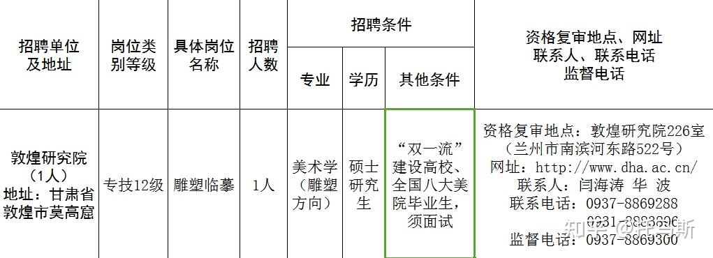 但是,敦煌研究院由于其在业界的地位,以及高水平的研究,岗位招考的要求条件又比较高,如下表所示: