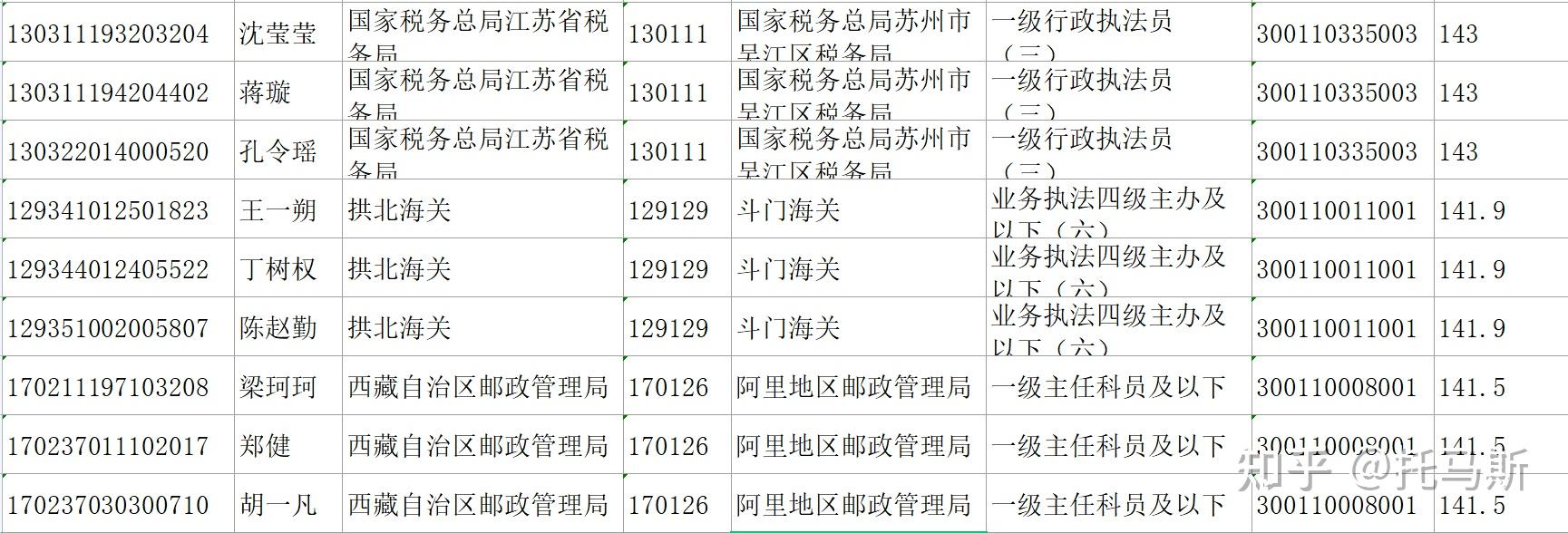 近三年国考中,全国各岗位的进面分数线第一名均出自税务系统: