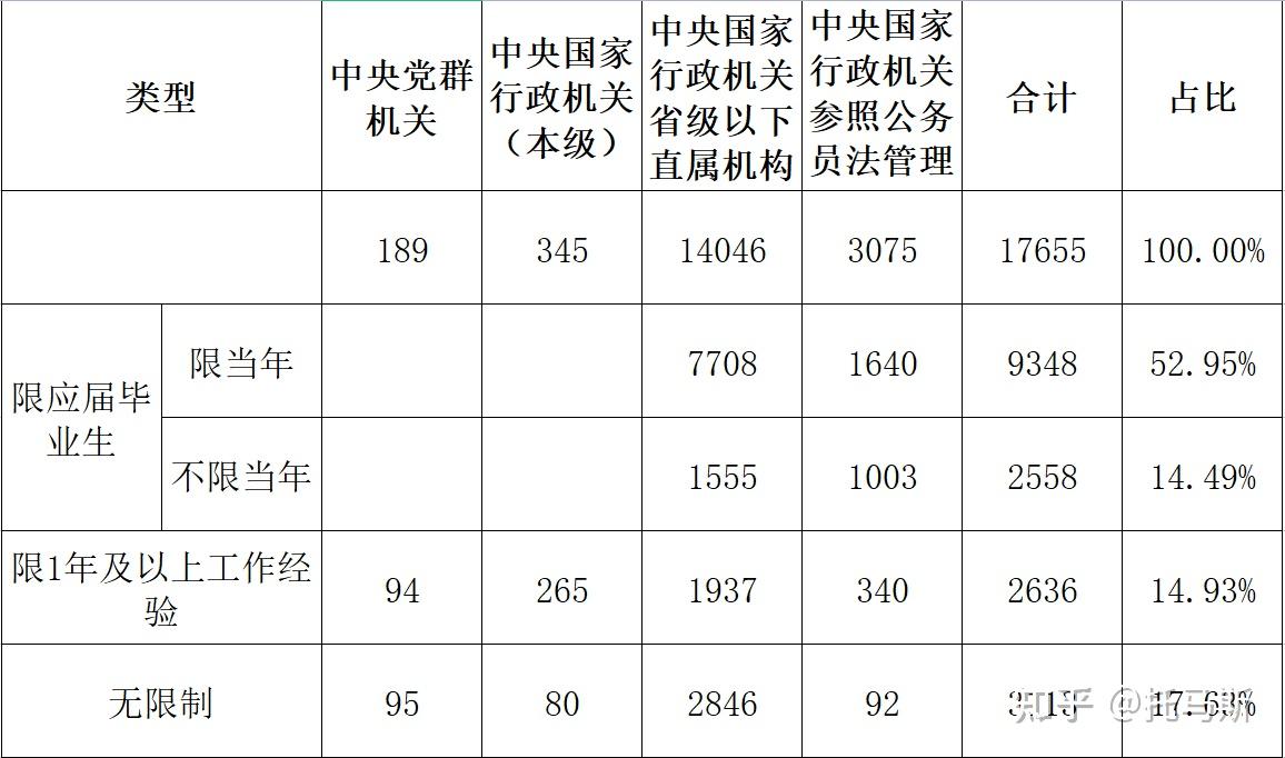 如果再加上不限制工作经验的 3113 个岗位,总共有 15019 个岗位可供当年毕业的应届毕业生报考,占比高达 85.07%,去年这一比例为 84.2%。