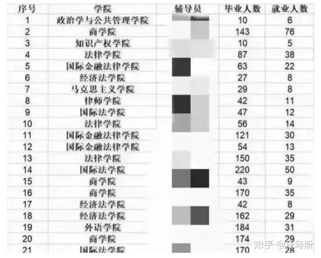 最近更是流出一份华东政法大学的毕业生就业统计表,表中共有49个辅导员所带的班级,4750人中仅有802人找到工作,整体就业率不到20%。班级就业率最高40%多,很多班级在10%左右。