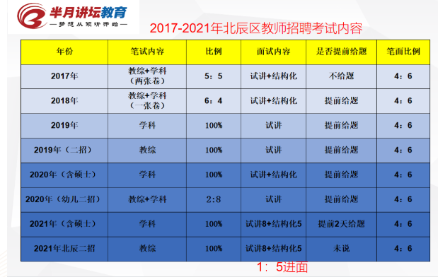 笔试内容:一招考学科,二招考教综。从下图历年笔面内容中也可以看到,北辰区历年笔试内容不是很稳定,还是那句话,考天津教师,教综+学科都需要认真学习。