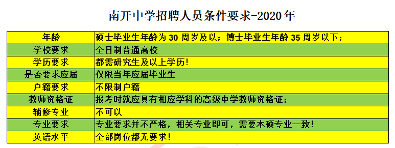 南开中学所有岗位都需要研究生以上学历,而且专业也必须本硕一致。