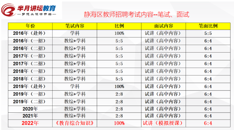 2022年静海区笔试单考《教育综合知识》,单考教综在近六年来是第一次!面试一直是试讲,笔面6:4。