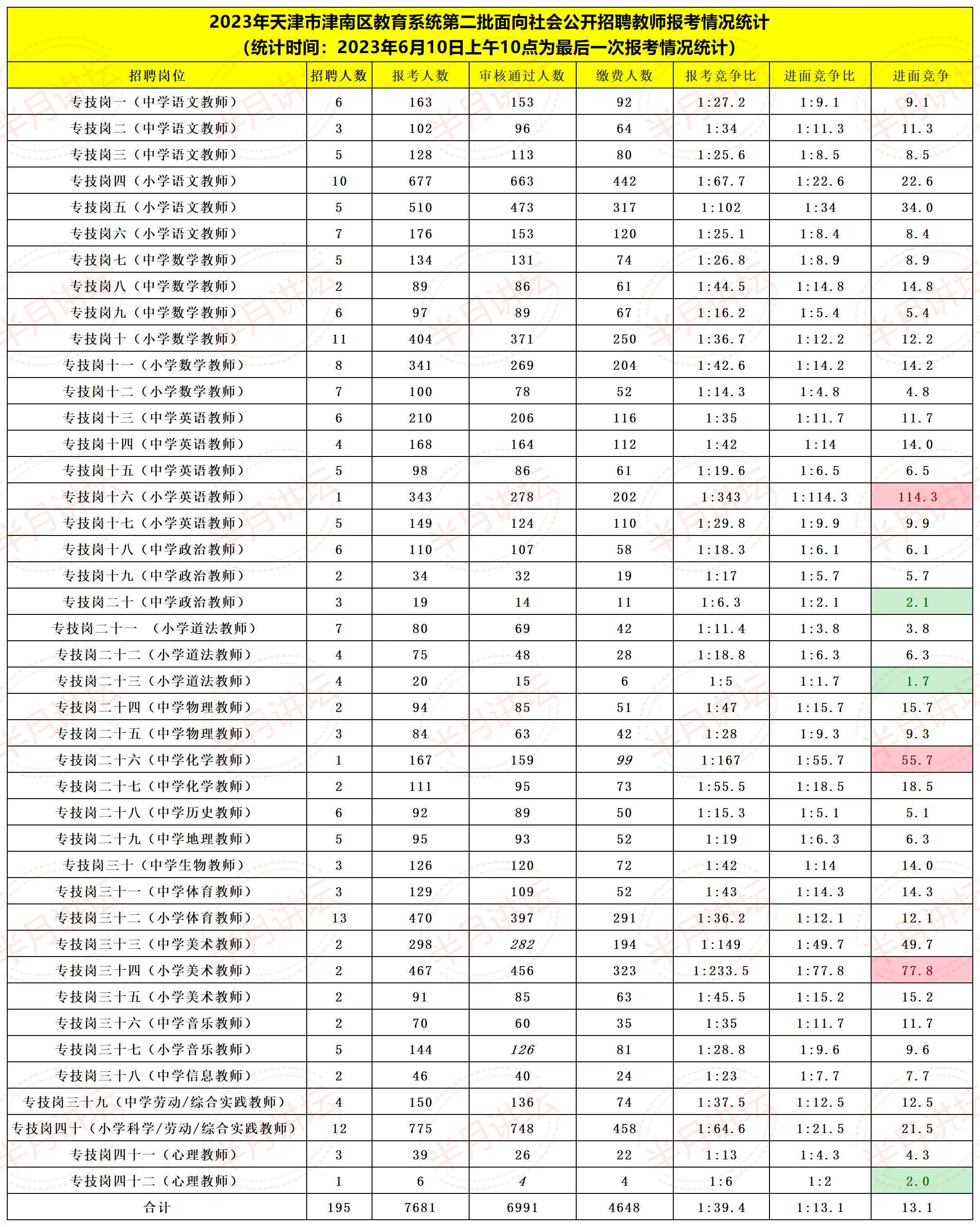 二招最高进面竞争比为 1:114,小学英语岗;竞争比最低是专技岗二十三小学道法老师。