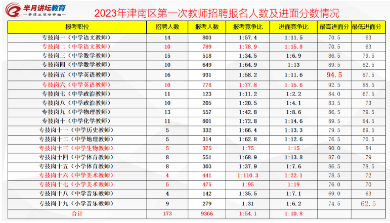2023年津南二招笔试结束,来看看一招的进面分数吧!最高进面分94.5!