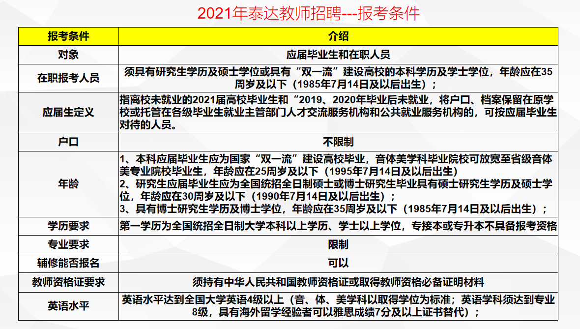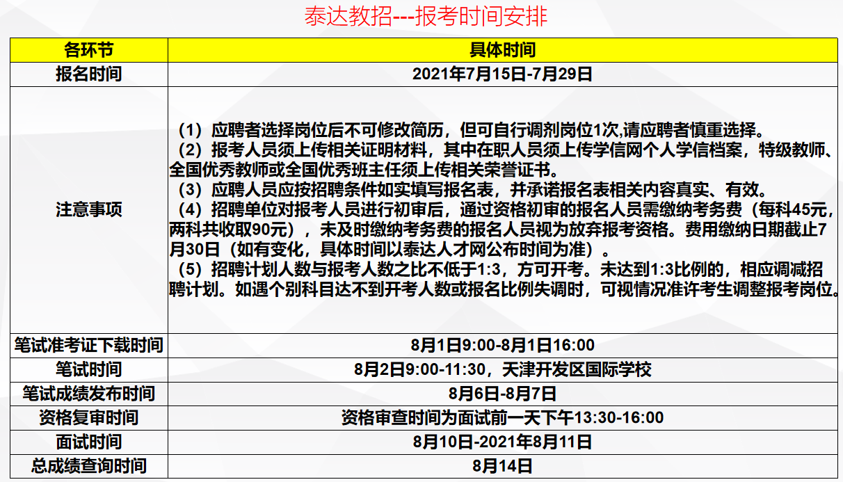 最后,祝同学们顺利,在大多数备考教招的学生来说,很少有符合泰达招考条件的,不符合条件的,努力准备目前的考试!