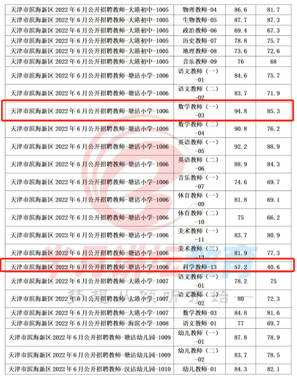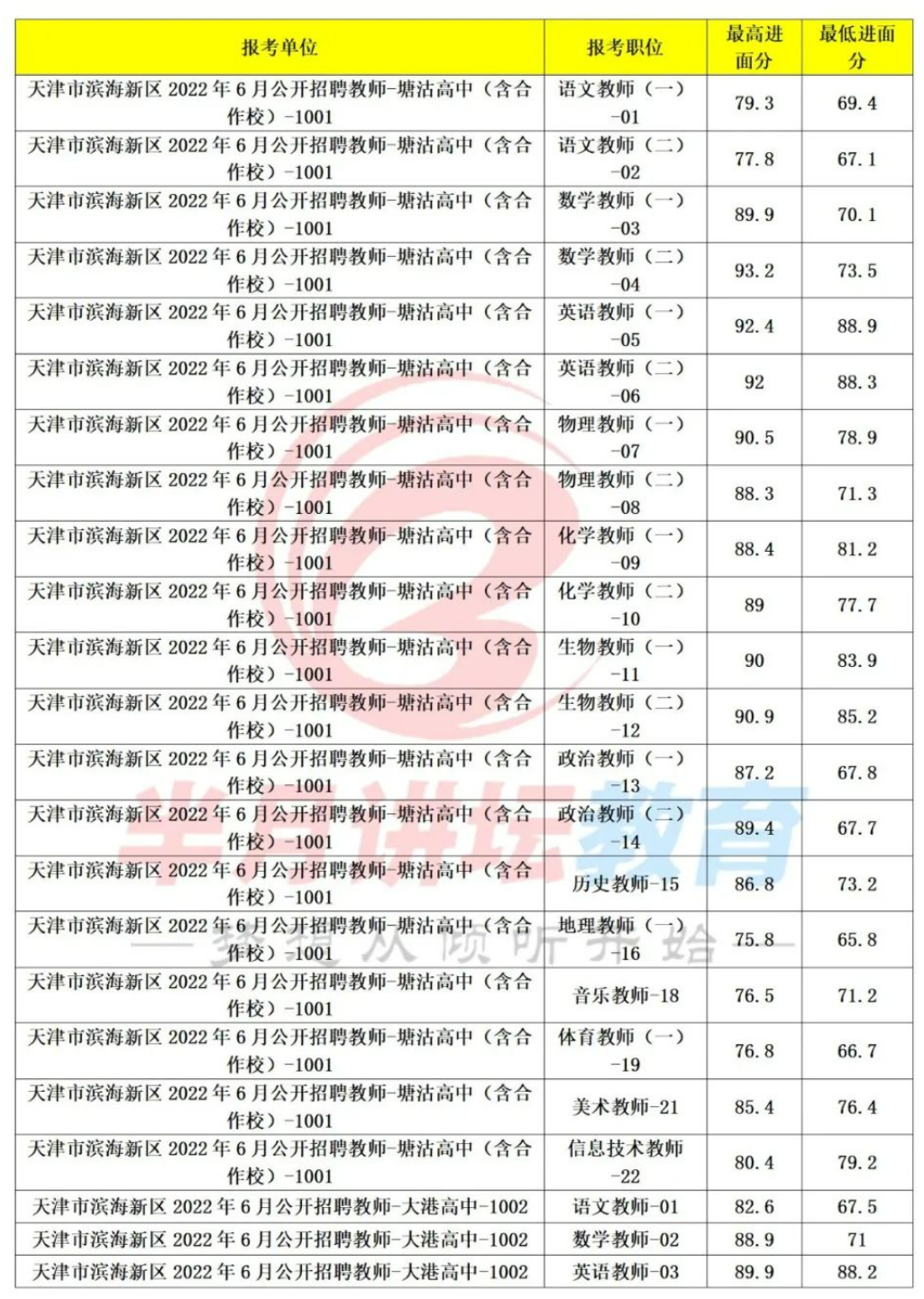 2023年天津教师编制,进面需要多少分?滨海新区各岗最高、最低进面分数