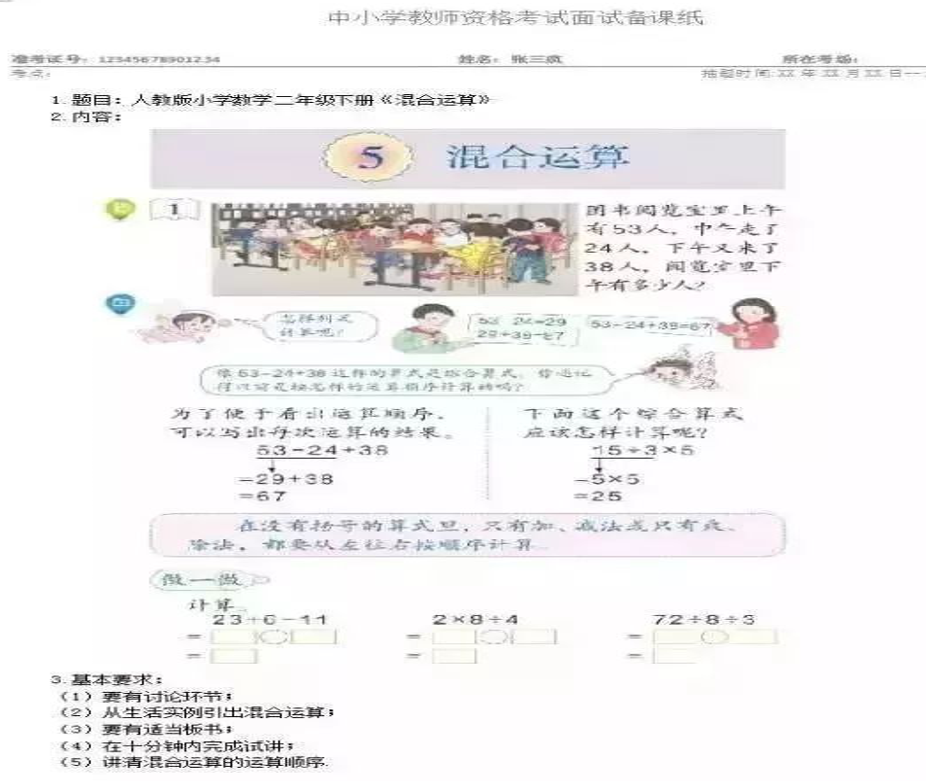 中小学试讲,备考20分钟,会给发备课纸,需要填写考生信息,一式三份,分给3位考官。