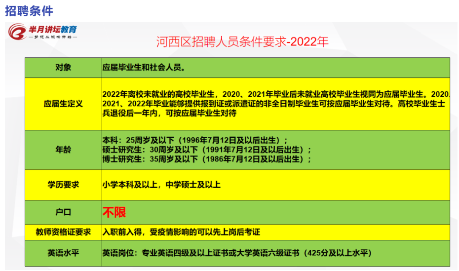 年龄限制上:本科要求25周岁以下,研究生及以上学历要求30岁以下;小学&幼儿岗位:本科及以上,中学岗位硕士及以上。