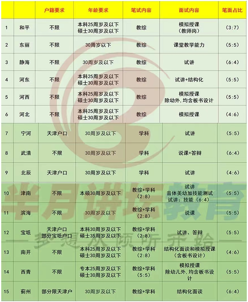今年笔试考试《教综》部分分量较重!天津主城区16个区中,除红桥区未招聘,有12个区有教综部分,其中有6个区,笔试只考《教综》!