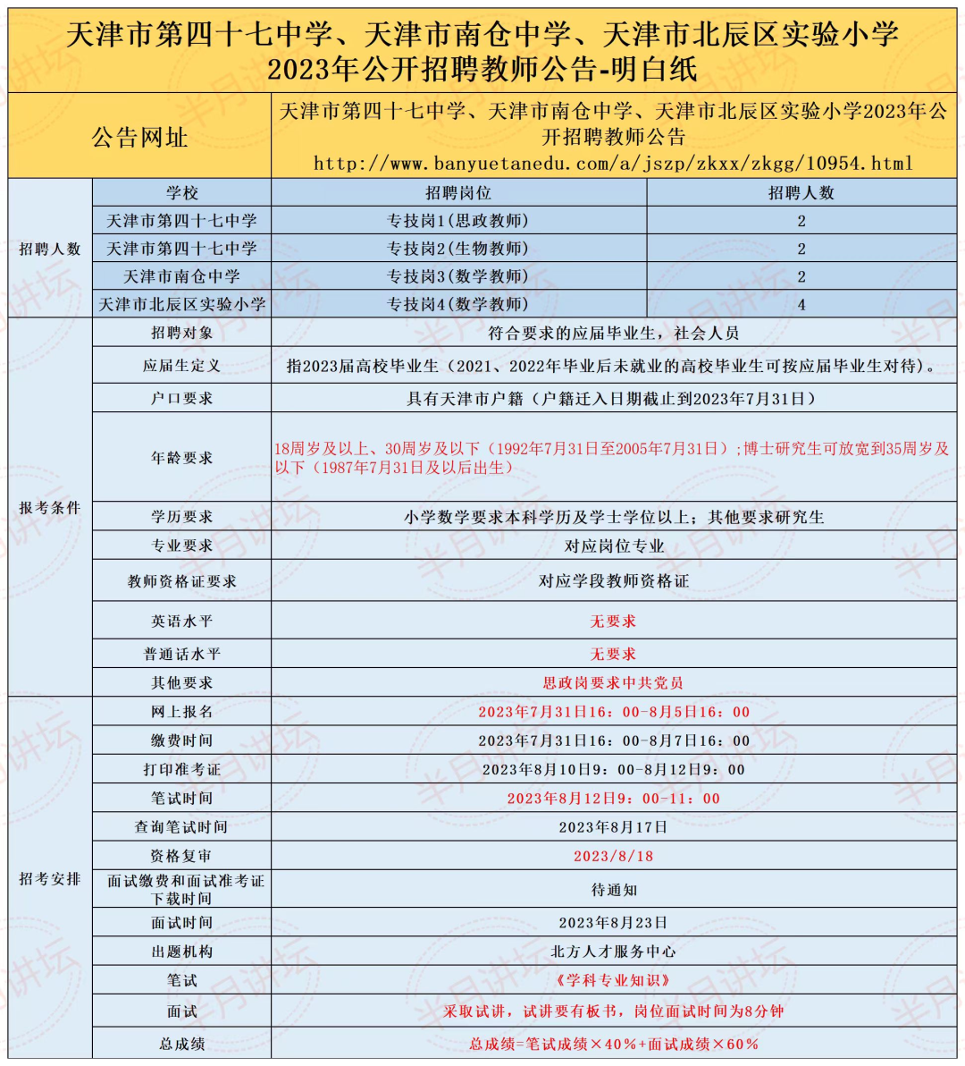 有编制!天津市第四十七中学、南仓中学、北辰区实验小学招聘教师10名!