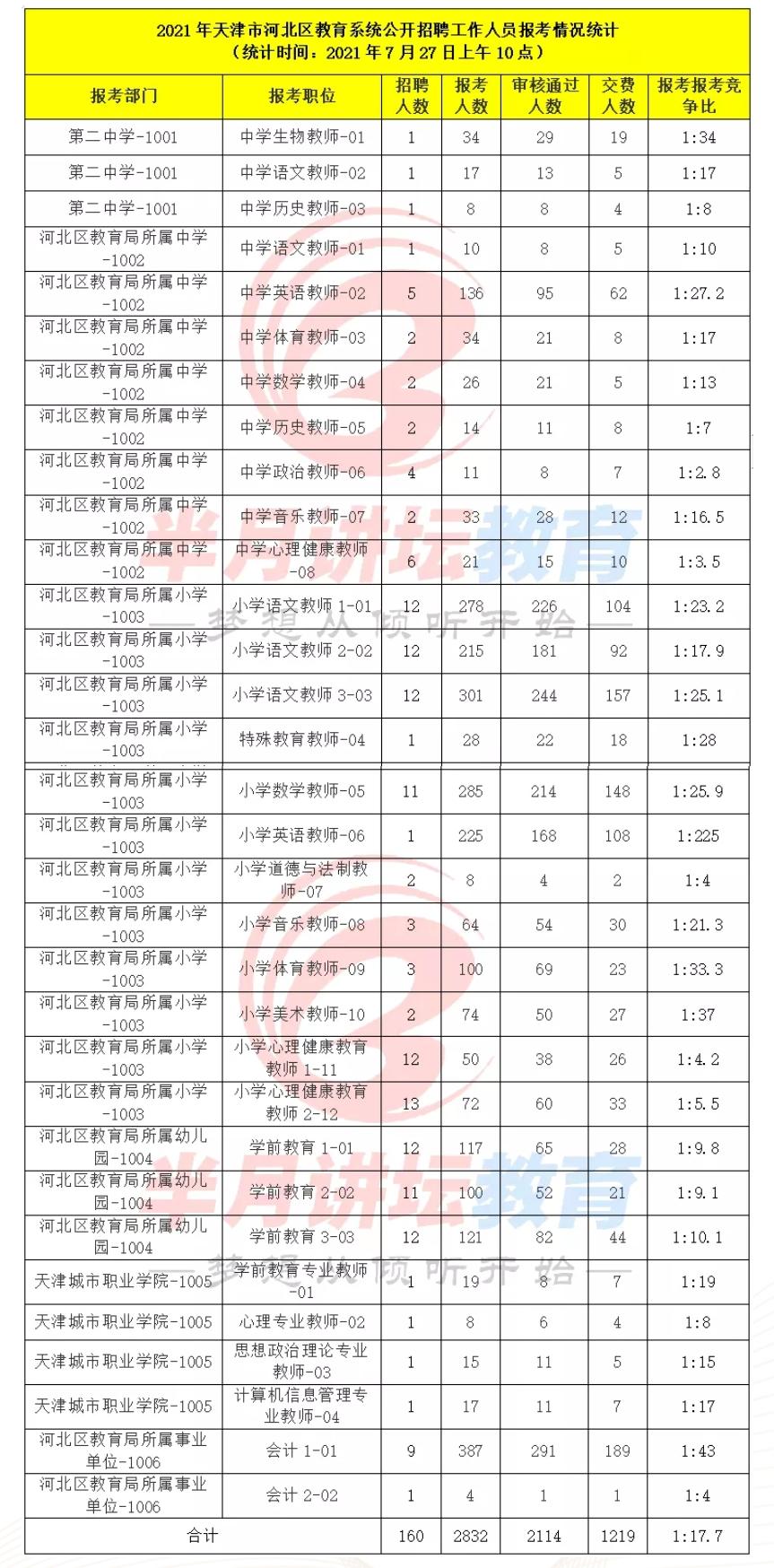 2023年河北区报名总人数2832人,平均竞争比1:17.7;