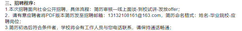 招聘岗位:高中语文4名;高中数学4名;高中英语4名;高中物理3名;高中化学3名;高中生物3名;高中历史3名;高中地理3名;高中政治3名;高中心理健康1名;高中音乐1名;高中信息技术1名。