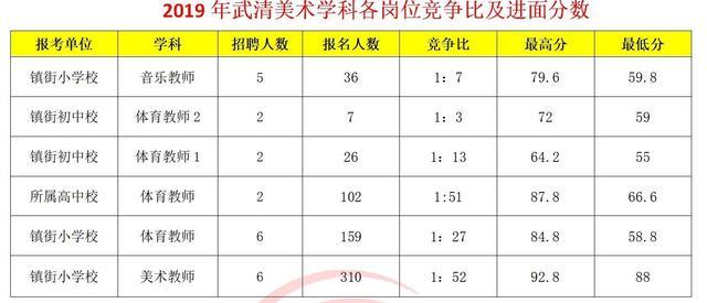 岗位分布比较均匀,分布都是1个人,这也就注定了武清美术你报考哪个岗位分数都不会太低,往届生也不要灰心,王庆坨的分数未必会比镇街的高。