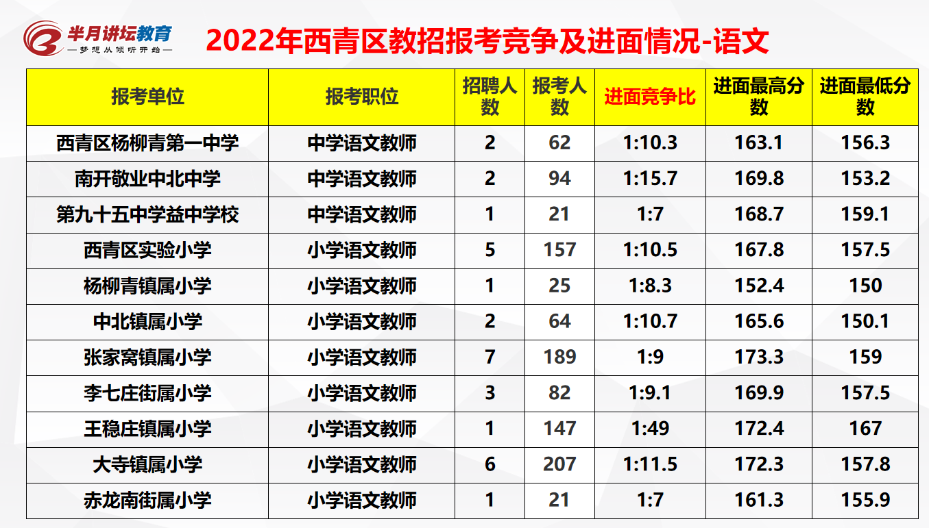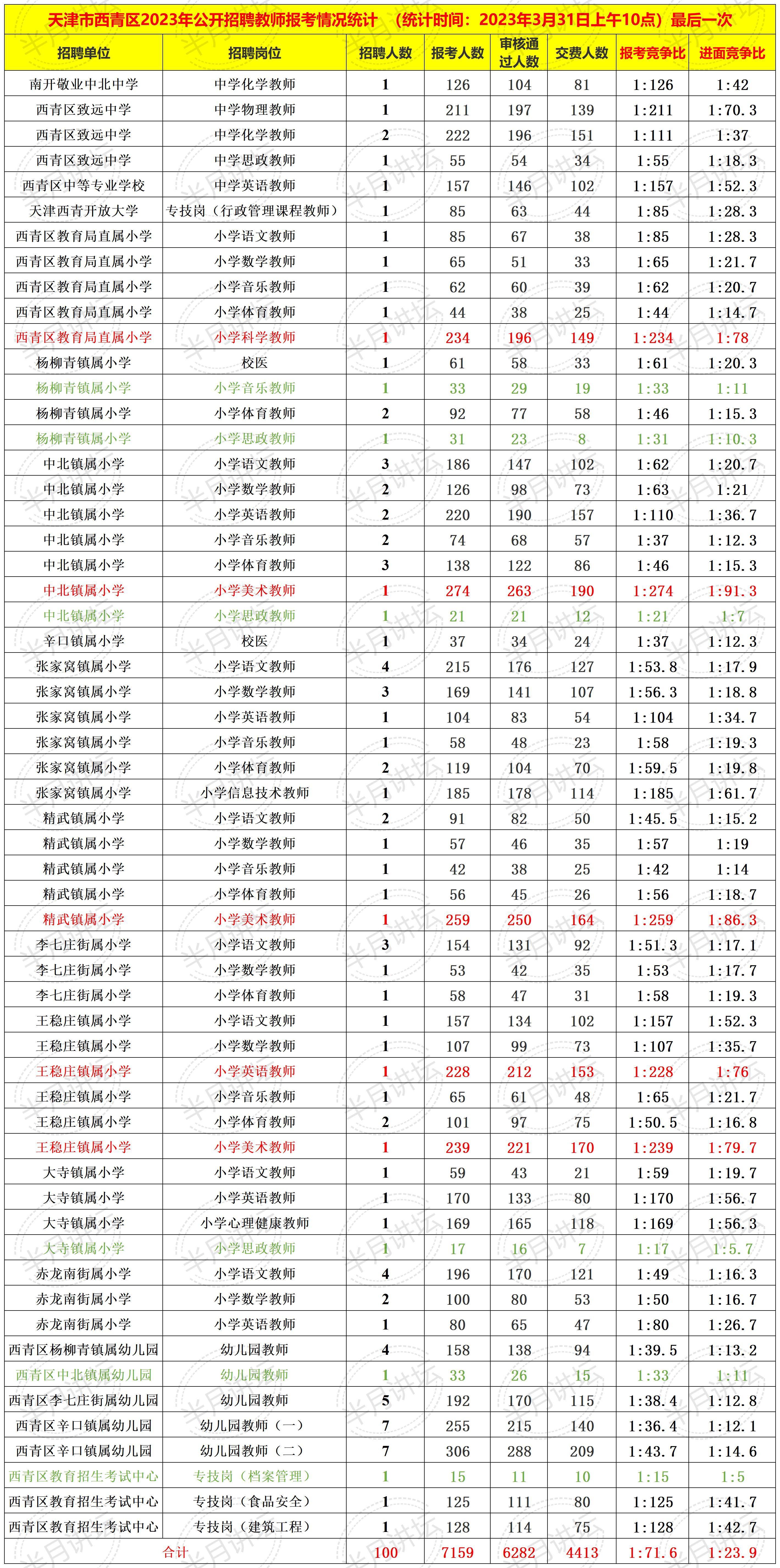 2023年西青区教师招聘100人,报名人数7159人!查看竞争比!