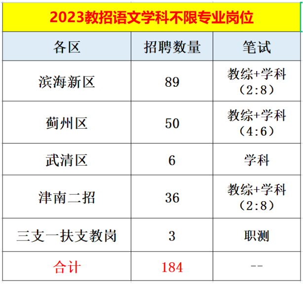 2023年天津教招语文!2023招聘人数增加二百余人!不限专业岗招聘184人