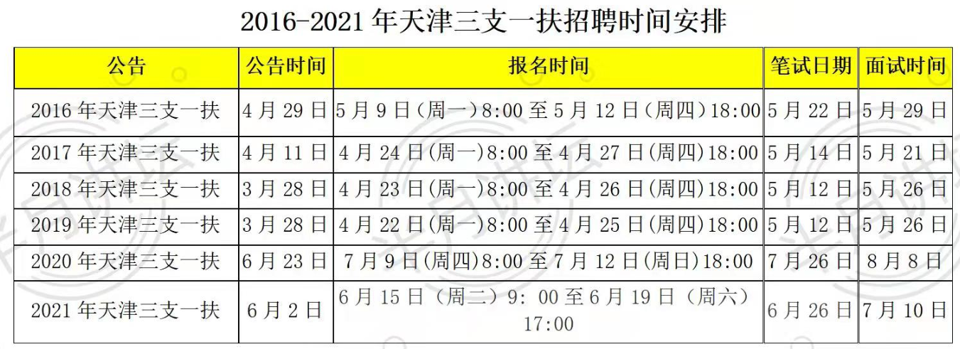 一、历年三支一扶考试时间安排
