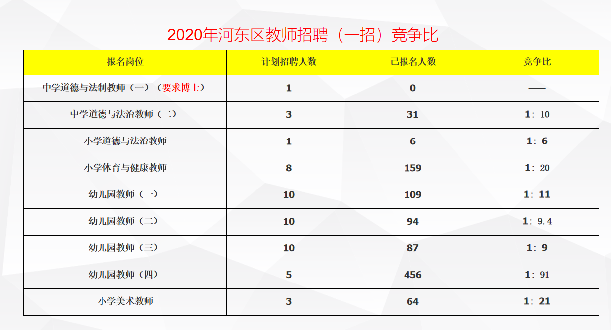 四、2023年河东区教师招聘(一招)竞争比