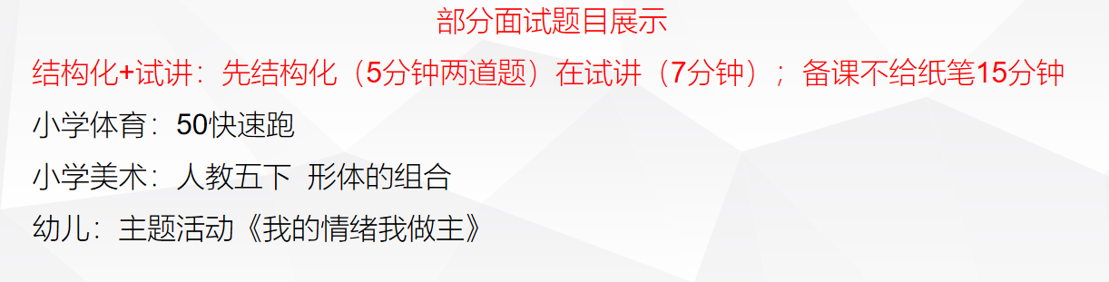 试讲:15分钟备课(不提供纸笔,不允许自带),试讲7分钟左右。