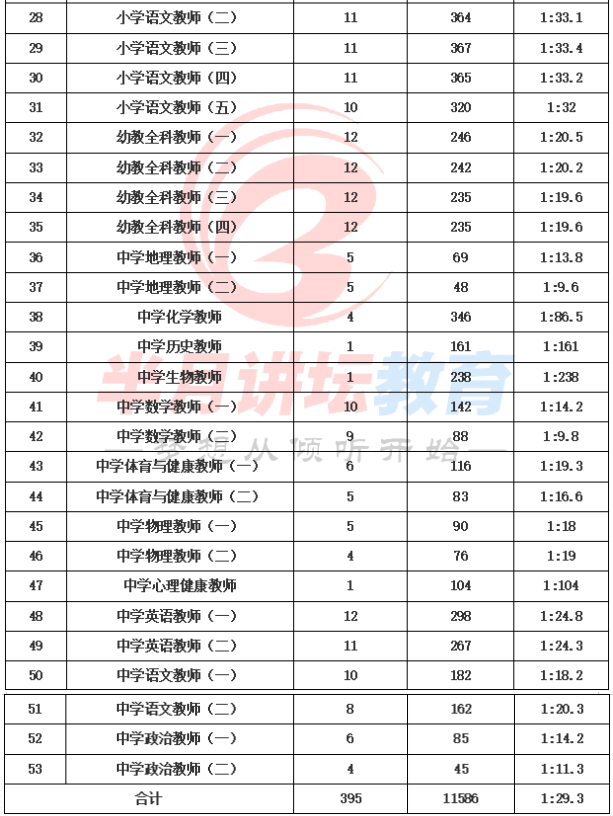 最高竞争比岗位:中学历史教师1:161