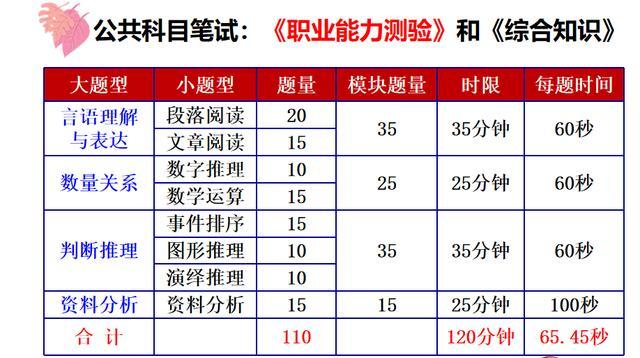 公共科目笔试包括《职业能力测验》和《综合知识》两科,满分各为100分。试卷由市级考试机构统一组织命制。考试不指定辅导用书,不举办也不委托任何机构举办辅导培训班。