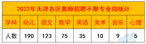 如果专业都不符合,天津教招也有不限专业岗位,主要有:幼儿、小学语文、小学数学、小学英语。