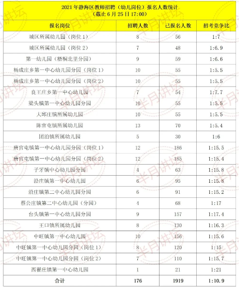 2023年静海区(幼儿)报名总人数1919人,平均竞争比1:10.9