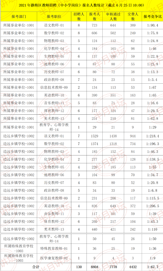 2023年静海区(中小学)报名总人数8804人,平均竞争比1:67.7