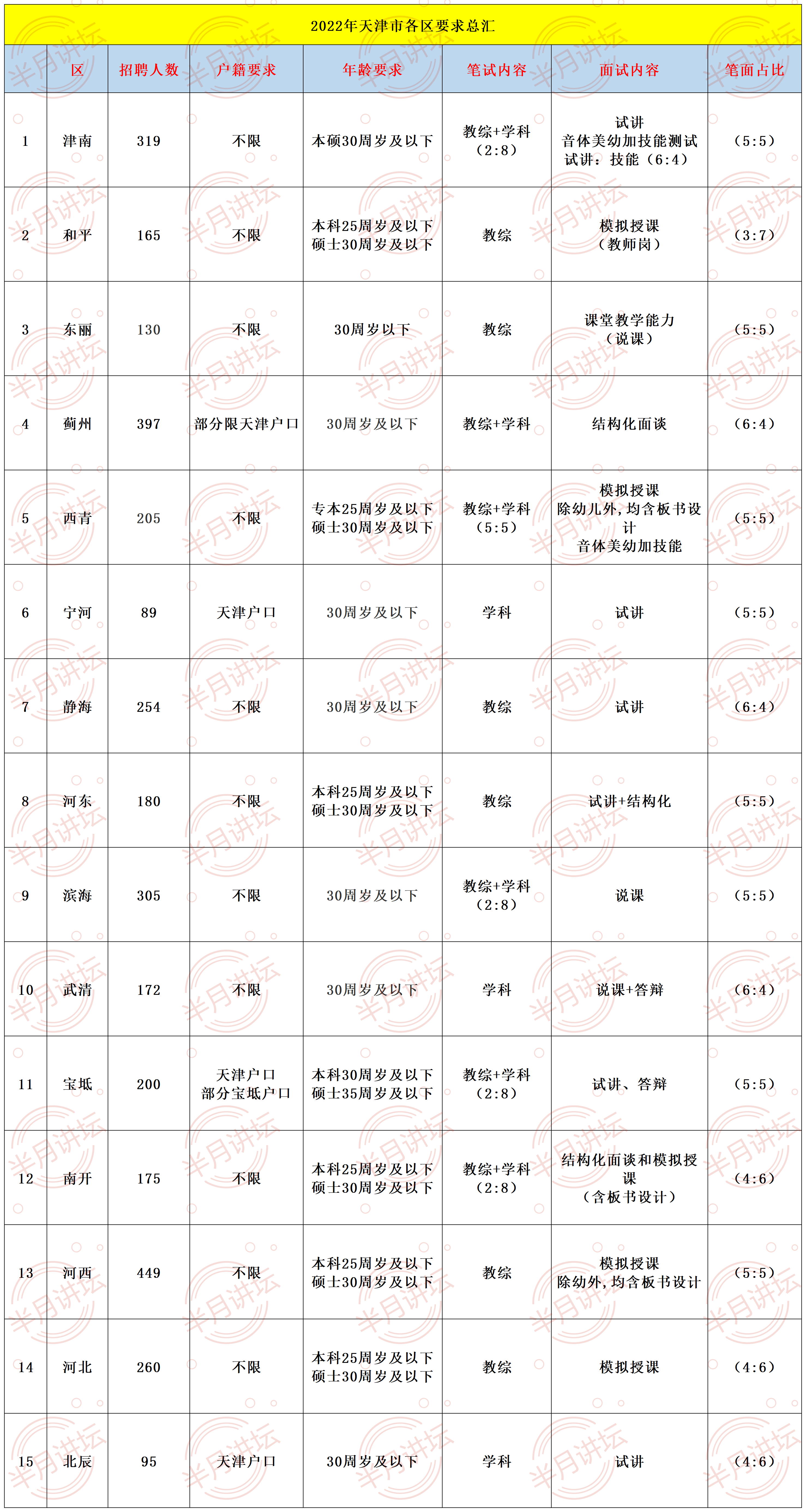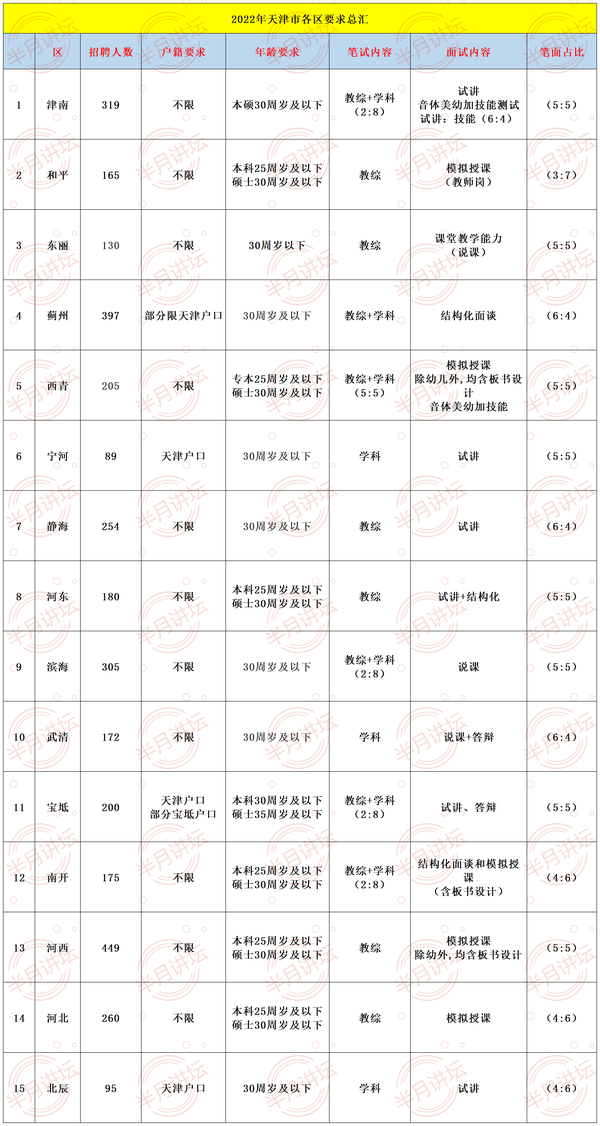 2023年天津市教师招聘各区年龄、户籍要求!笔面内容及占比汇总!