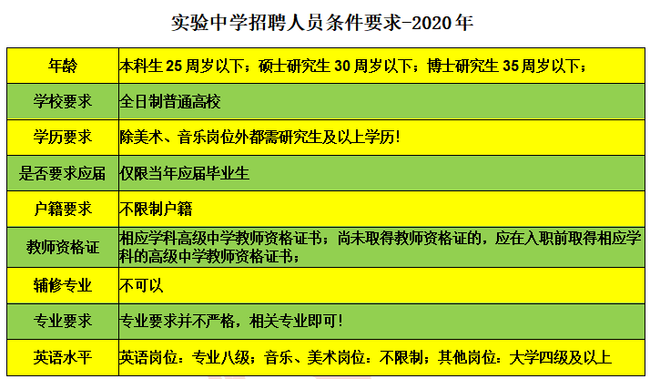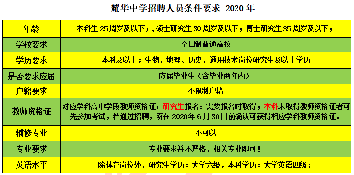 耀华中学、第一中学、实验中学 三年所学校和大部分区招聘要求一样,本科生25周岁及以下;,硕士研究生30周岁及以下;博士研究生35周岁及以下;