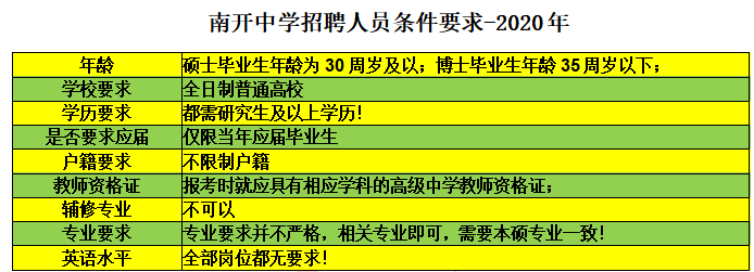 南开中学硕士毕业生年龄为30周岁及以下;博士毕业生年龄35周岁以下;