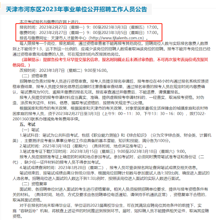 河北区3月3号报名,河东区2月27号报名,和平区3月1号报名,备考事业单位的考试要整理好各区报名时间,不要遗漏遗忘,毕竟多一个就多一份上岸希望!