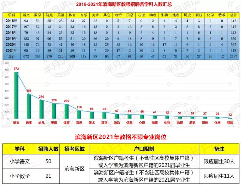2023年公告早、招聘多、专科有岗!滨海新区历年教招考情!含各城区难度