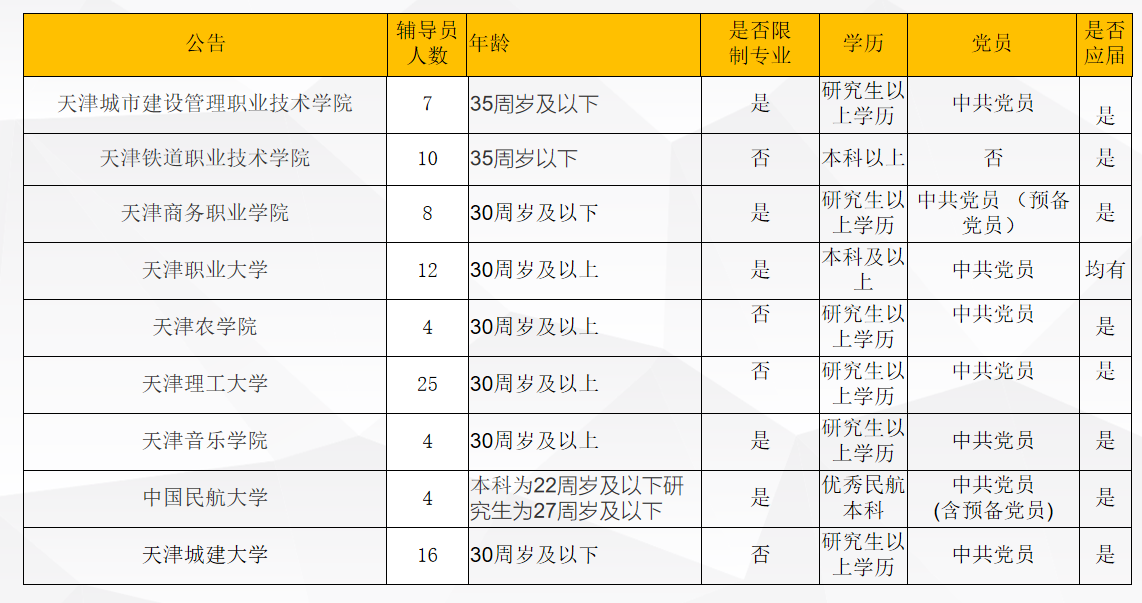 其他要求:辅导员,组织员,思政老师,心理老师,一般要求中共党员(含预备党员),部分组织员,部分岗位会要求当年应届或者两年应届,辅导员岗位会要求正式党员如2023年海运职业学院招聘辅导员考试,部分学校会要求相关工作或者在校期间相关工作经历。
