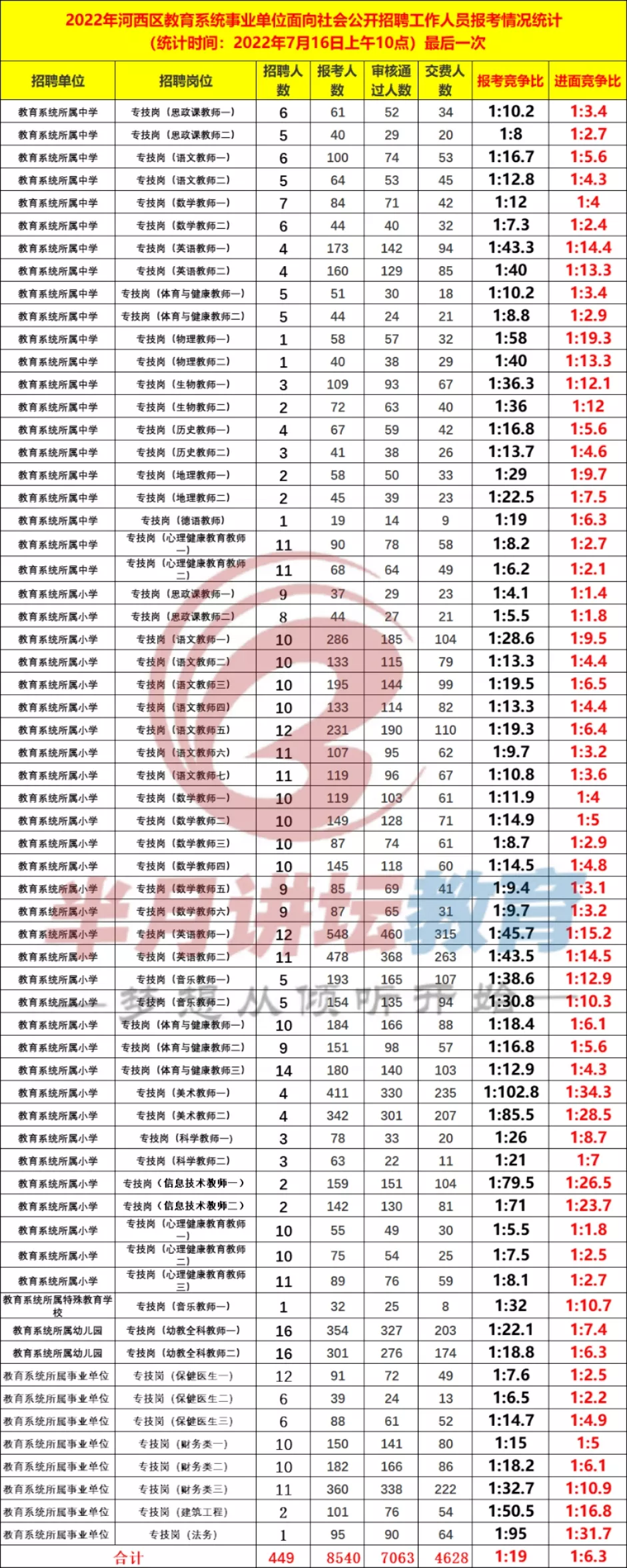 2022年天津市河西区教招 最后一次报考情况统计:报考8540人,竞争比1:19!