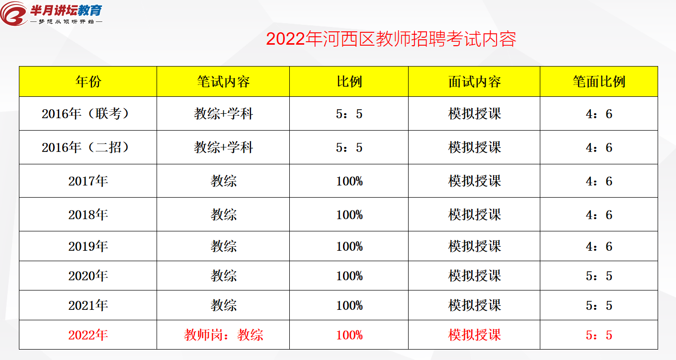 这两年天津户籍限制逐步放开,2022年河西区不限户籍,年龄和笔面内容上没有太大变化,本科25周岁以下,笔试单考教综,笔面5:5。